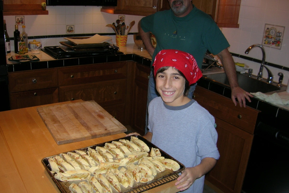 Next up was Nonna’s sugar-free batch of biscotti. We guided him along, but this was Gino’s baby from start to finish. He did all the measuring, mixing, forming, baking, slicing, second baking… The whole shebang. they came out great. Nonna said they were the best ever – and when it comes to her cookies, she never lies!
