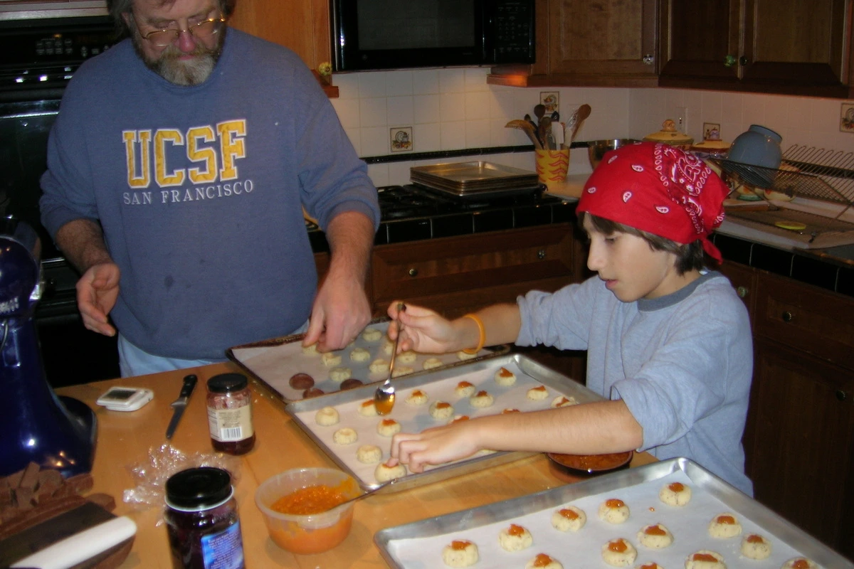 We had quite a list of cookies we wanted to get made, and started in as soon as he arrived. The first thing we made was the dough for Aunt Emma’s Apricot Cookie. It really should refrigerate overnight, so we wanted it in the ‘fridge fast.
