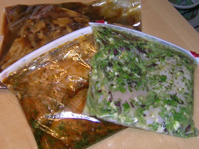 10 minutes in the kitchen this morning will save me lots of time today and tomorrow… I made a couple of simple marinades! (Well, actually, I put some chicken and a brisket into ziplock bags and added some stuff.) Really easy!