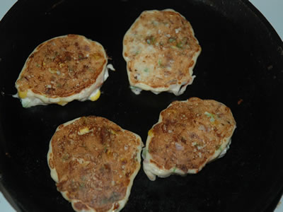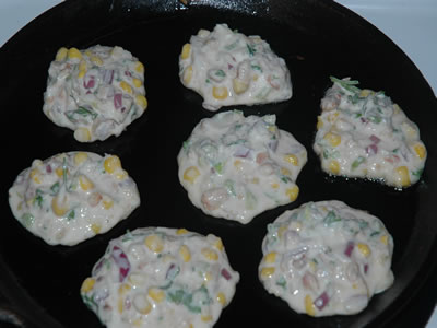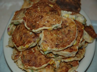 Drop spoonfuls of batter onto a nonstick frying pan or lightly greased skillet or griddle and cook 3-4 minutes until bubbles rise to the top of the batter and bottom is brown. Turn them over to finish cooking. Serve hot or cold.