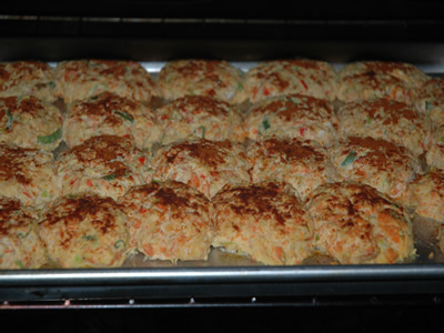 These are wonderful served with a pot of large dried lima beans cooked with a ham hock, zucchini strips salted and peppered and sprinkled with parmesan cheese and roasted in a 375° oven for 15 minutes (Why waste the heat when the oven is hot? You have two racks in there for a reason), steamed broccoli, or just a plate of fresh biscuits. These make outstanding leftovers and are a good finger food hot or cold.
