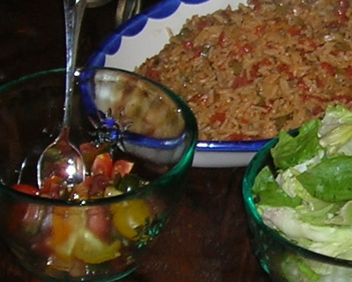 I started off with Chimichurri Rice. Chimichurri is a sauce or marinade originally from Argentina, but popular in parts of South and Central America. On our last trip to San Francisco, we stopped off at Cost Plus and picked up some chimichurri spice mixture. The directions say to make it into a marinade. I thought rice was a better idea.