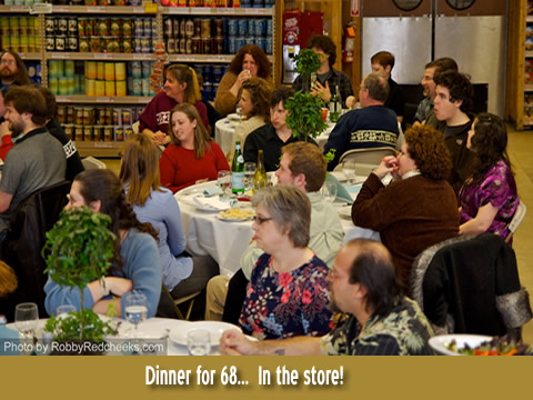A hot plate and an easy bake oven. That’s what we have to work with. But with those primative tools, we pulled off a dinner for 68 people in the store!