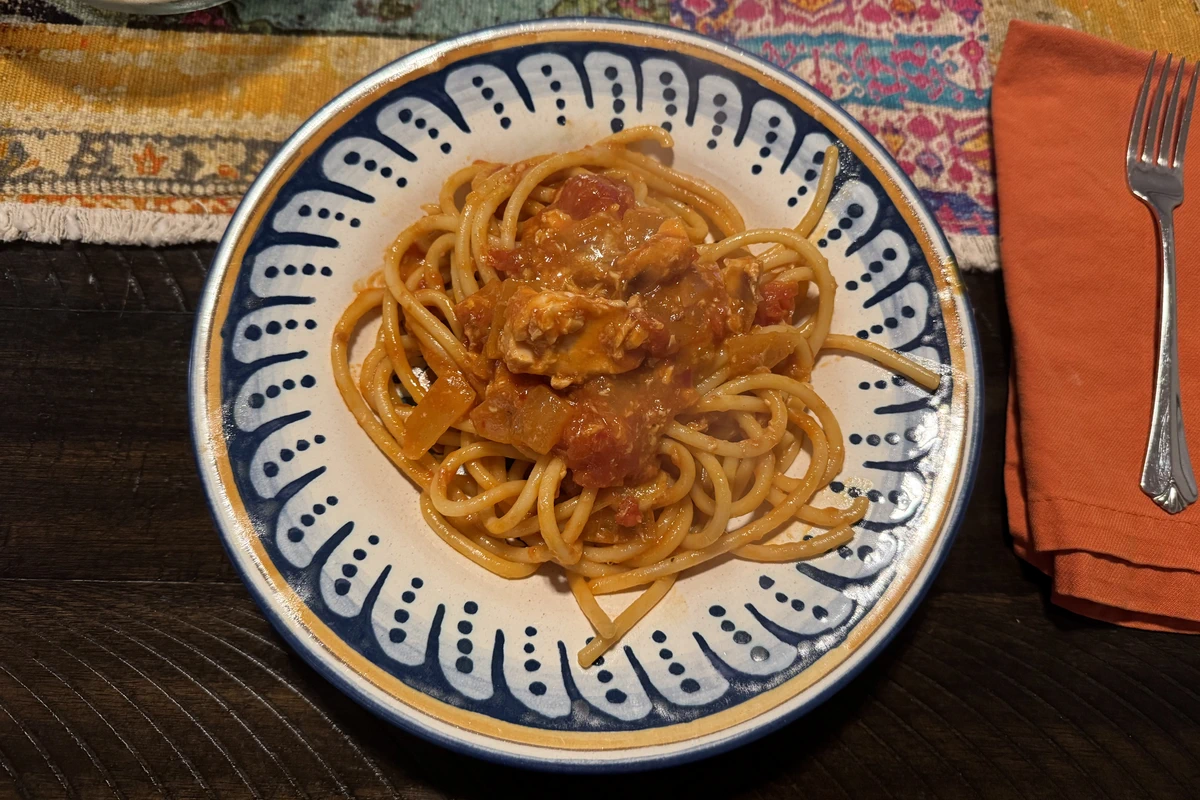 - 1 pound uncooked spaghetti, bucatini, linguine, or penne