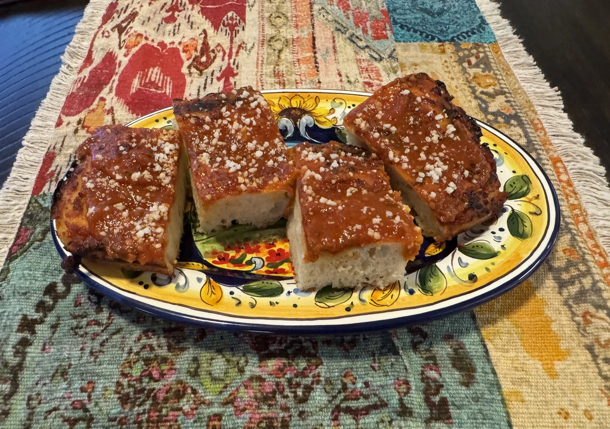 Tomato Pie. It’s a South Philly staple with its roots in Sicily. It’s not focaccia – it’s Tomato Pie. Capisce?!?