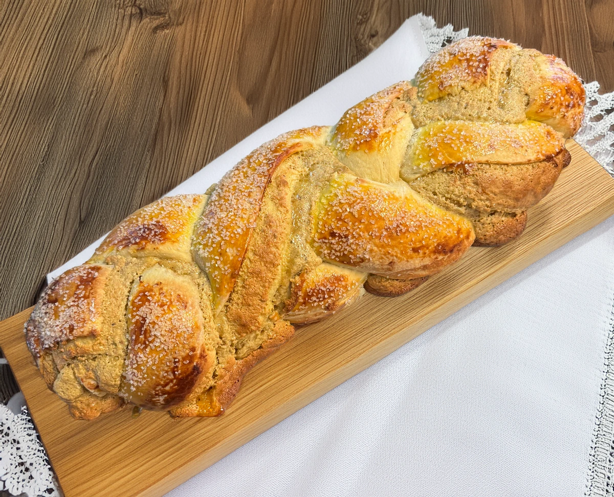 Brush them with a little egg and sprinkle with orange zest, then roll each strip up to form three “salami rolls.” Braid them together and place the resulting braid on a baking sheet lined with parchment paper.