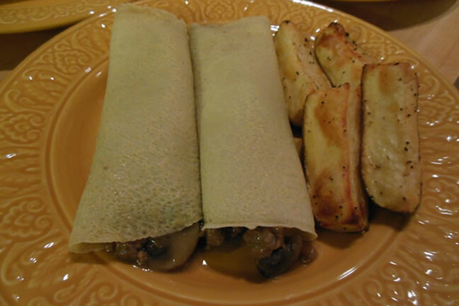 Crespelle con funghi e carne macinata di manzo
